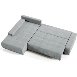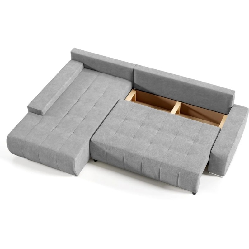 Mebel Draco L to nie tylko estetyka, ale także pełna wygoda użytkowania. Dzięki funkcji spania szybko i bez wysiłku przekształca się w komfortowe łóżko, zapewniając dodatkową przestrzeń do odpoczynku. Wbudowany pojemnik na pościel to praktyczne rozwiązanie, które pomaga w utrzymaniu porządku i organizacji przestrzeni.