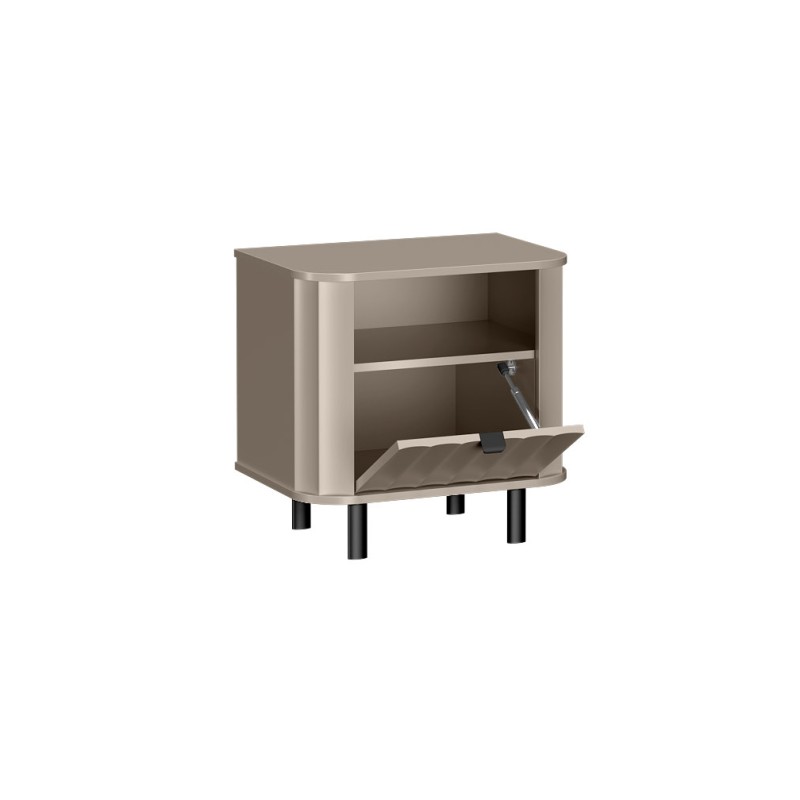 Szafka nocna NEVADA to połączenie nowoczesnego designu i praktycznych rozwiązań – posiada otwartą wnękę oraz zamykaną klapę na podręczne drobiazgi. Wysokiej jakości materiały, metalowe nogi i nowoczesna kolorystyka sprawiają, że doskonale wpasuje się w każdą sypialnię.