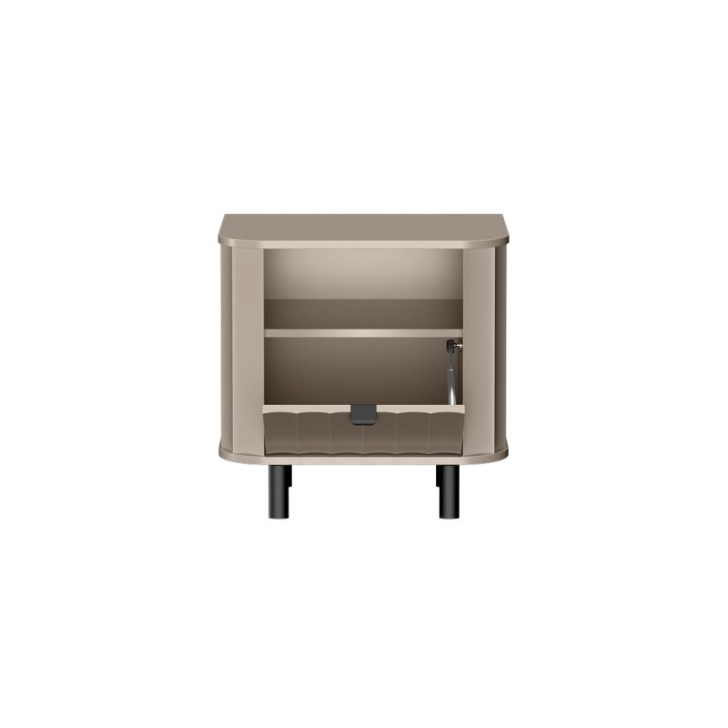 Szafka nocna NEVADA to propozycja dla tych, którzy cenią wyrafinowane wzornictwo i praktyczne rozwiązania. Subtelne zaokrąglone linie, smukłe metalowe nogi oraz starannie dobrane kolory sprawiają, że mebel ten staje się nie tylko funkcjonalnym elementem sypialni, ale także jej ozdobą.