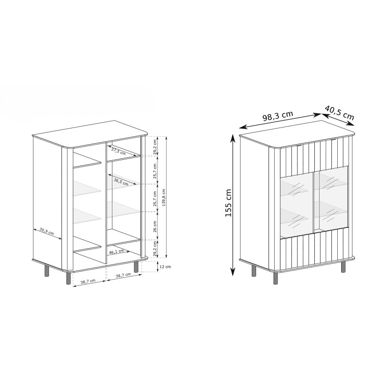 Dzięki uniwersalnym wymiarom i ponadczasowemu designowi, witryna NEVADA sprawdzi się zarówno w salonie, jak i jadalni. Może pełnić funkcję eleganckiego elementu dekoracyjnego lub praktycznego miejsca do przechowywania.