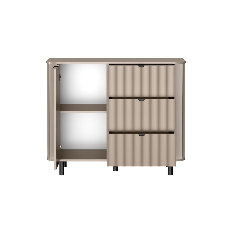 Z wymiarami ok. 111 × 91 × 40,5 cm (wysokość × szerokość × głębokość), komoda NEVADA świetnie sprawdzi się zarówno w mniejszych, jak i większych przestrzeniach: