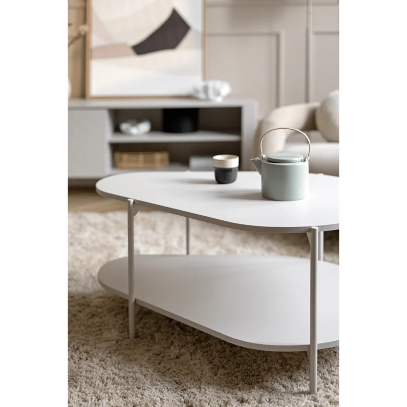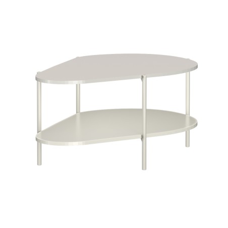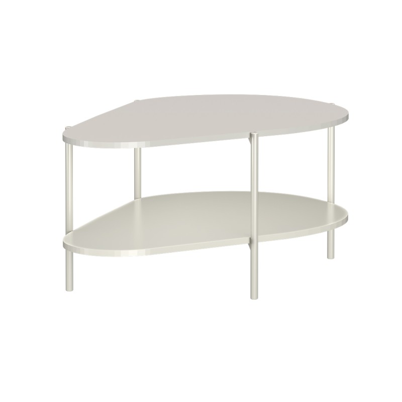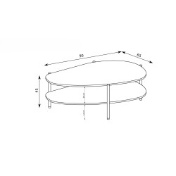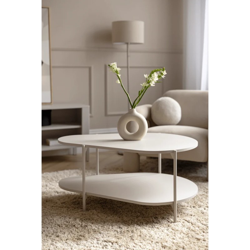 Nowoczesny stolik kawowy o organicznym kształcie to połączenie minimalistycznego designu z funkcjonalnością. Dwupoziomowa konstrukcja z dodatkową półką i metalowym stelażem doskonale uzupełni każde współczesne wnętrze.