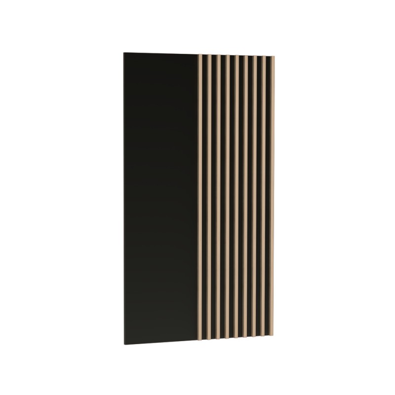 Panel dekoracyjny ścienny Caya 80x138 w kolorze dąb artisan i czerni to nowoczesna ozdoba do salonu, sypialni lub gabinetu. Stylowe lamele MDF i trwałe wykonanie gwarantują elegancki wygląd na lata.