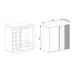 Szafa CAYA dostępna jest w dwóch wariantach szerokości – 179 cm oraz 199 cm – co pozwala dopasować mebel do każdej przestrzeni: zarówno mniejszych pokoi, jak i większych sypialni czy garderób.