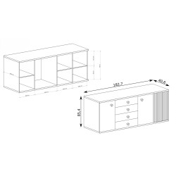 Czarny detal z lamelami zestawiony z ciepłym odcieniem Dąb Artisan nadaje komodzie eleganckiego, nowoczesnego wyrazu. Świetnie wpasuje się w aranżacje loftowe, skandynawskie czy minimalistyczne.