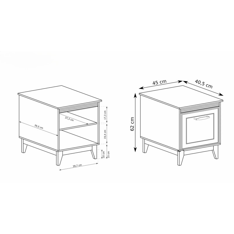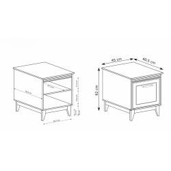 Szafka nocna Charlott to połączenie klasycznego stylu z codzienną wygodą. To mebel, który pięknie dopełni aranżację sypialni, jednocześnie oferując praktyczną przestrzeń do przechowywania. Idealna zarówno do sypialni głównej, jak i pokoju gościnnego.
