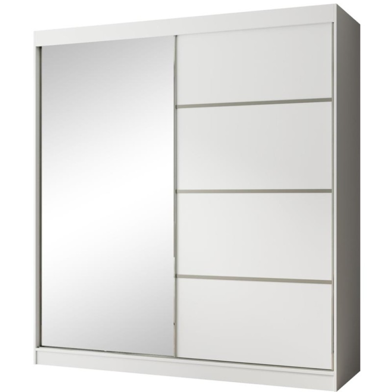 Szafy przesuwne z lustrem Paco wykonane są z płyty laminowanej o grubości 16 mm. Szafa Paco wyposażona jest w system jezdny obejmujący aluminiowe prowadnice typu "laguna", łożyskowane rolki typu "fast" oraz aluminiowe uchwyty na krawędziach frontów. Dodatkowo fronty szaf ozdobione są szkłem meblowym i lustrem. W skład zestawu wchodzą: Korpus/szafki wewnętrzne, półki, drążek meblowy, zestaw montażowy, fronty płytowe lub fronty płytowe + szkło/lustro. Szafa Paco o wymiarach 120, 150 i 200 cm posiada dwa fronty, natomiast szafa 250 cm posiada trzy fronty.