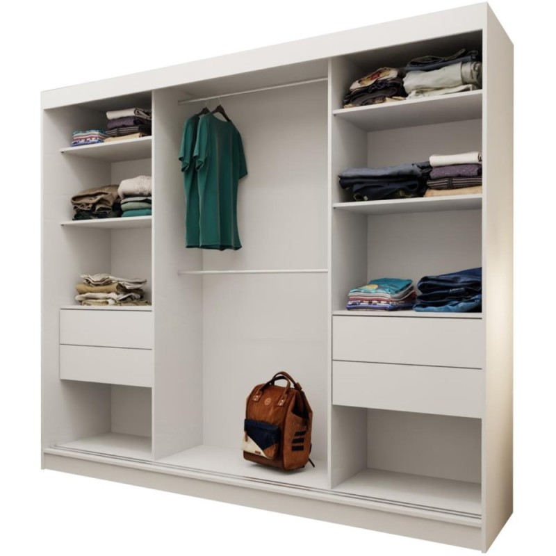 Pojemne wnętrze – drążek na ubrania, półki i szuflady umożliwiają przechowywanie różnych elementów garderoby.