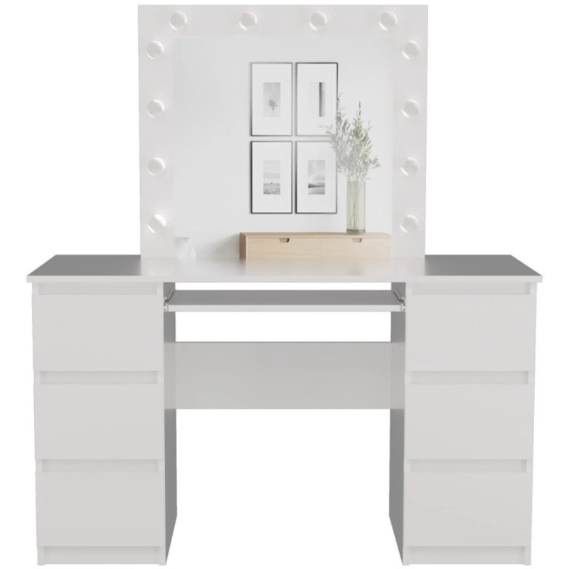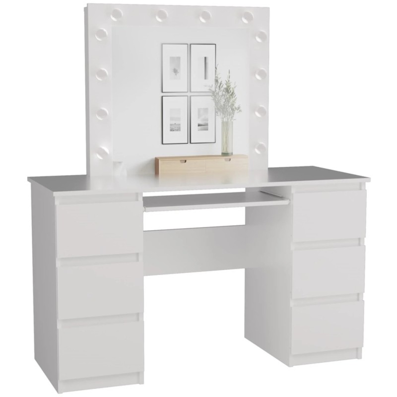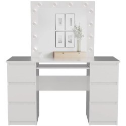 Toaletka z lustrem LED to elegancki i funkcjonalny mebel, idealny do każdej sypialni. Dzięki oświetleniu LED, zapewnia doskonałe warunki do makijażu, a sześć przestronnych szuflad pozwala na wygodne przechowywanie kosmetyków. Biała toaletka kosmetyczna z lustrem w stylu skandynawskim doda uroku Twojemu wnętrzu, łącząc nowoczesny design z praktycznością.