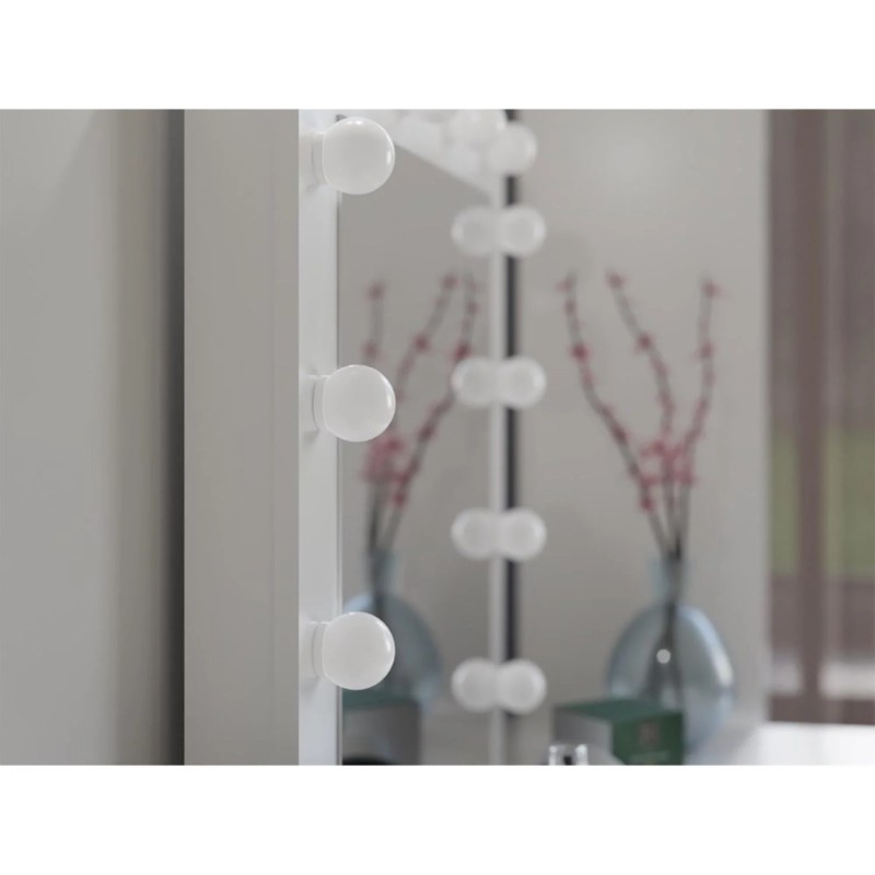 Nasza toaletka z lustrem Marina II została zaprojektowana z myślą o wygodzie i elegancji. Wyjątkowe lustro z oświetleniem zapewnia odpowiednią ilość światła do precyzyjnego makijażu, a lampki LED mogą być regulowane, by dostosować natężenie światła do indywidualnych potrzeb. Dzięki oświetlenie LED, Twoje poranne rytuały staną się przyjemnością.